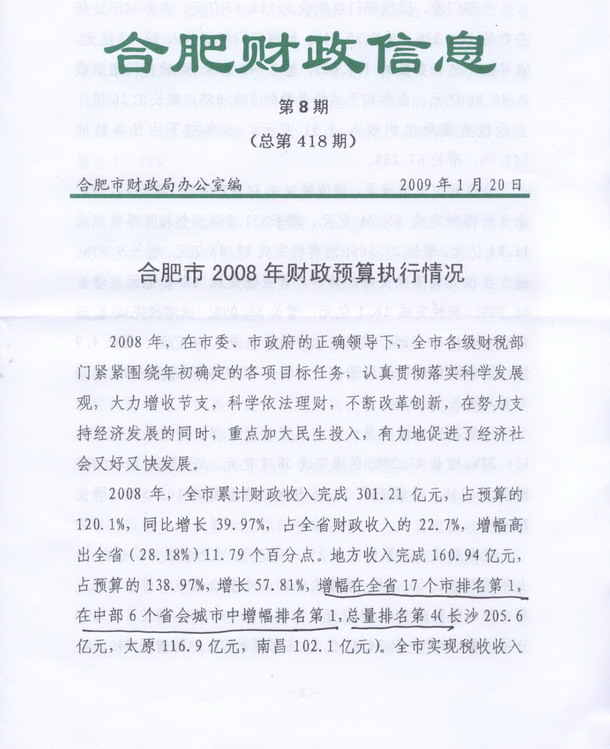合肥市2008年财政预算执行情况