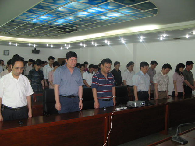 5月19日至21日是全国哀悼日,按照国务院公告,期间停止一切公众娱乐活动。5月19日14:28分,集团公司全体员工停止工作肃立默哀3分钟,以表达对四川汶川大地震遇难同胞的深切哀悼。