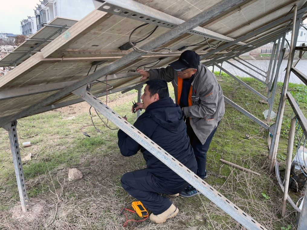 2020年7月份,因遭遇特大洪涝灾害,安庆市宿松县泗洲村的光伏扶贫电站遭受水灾,在长达近2个月水浸下,电站完全毁损,直接导致该扶贫项目停运。安徽省能源局知悉此事后,推荐金太阳公司给予扶贫救助。公司党支部高度重视,随即召开专题支委会,研究部署相关工作,安排技术人员赶赴现场勘察。通过检测,部分组件、电气设备已短路烧毁无法使用且存在漏电安全隐患,技术人员现场进行临时应急处理,并登记耗材明细。随后,公司党支部派出由电站运维骨干和技术能手组成的党员突击队,自备材料前往泗洲村进行维修作业,仅用时1天完成电站维修,恢复正常供电。据统计,该扶贫电站运行发电将带动周边贫困户10户19人参与收益分红,平均每户年均可增收约2000元。